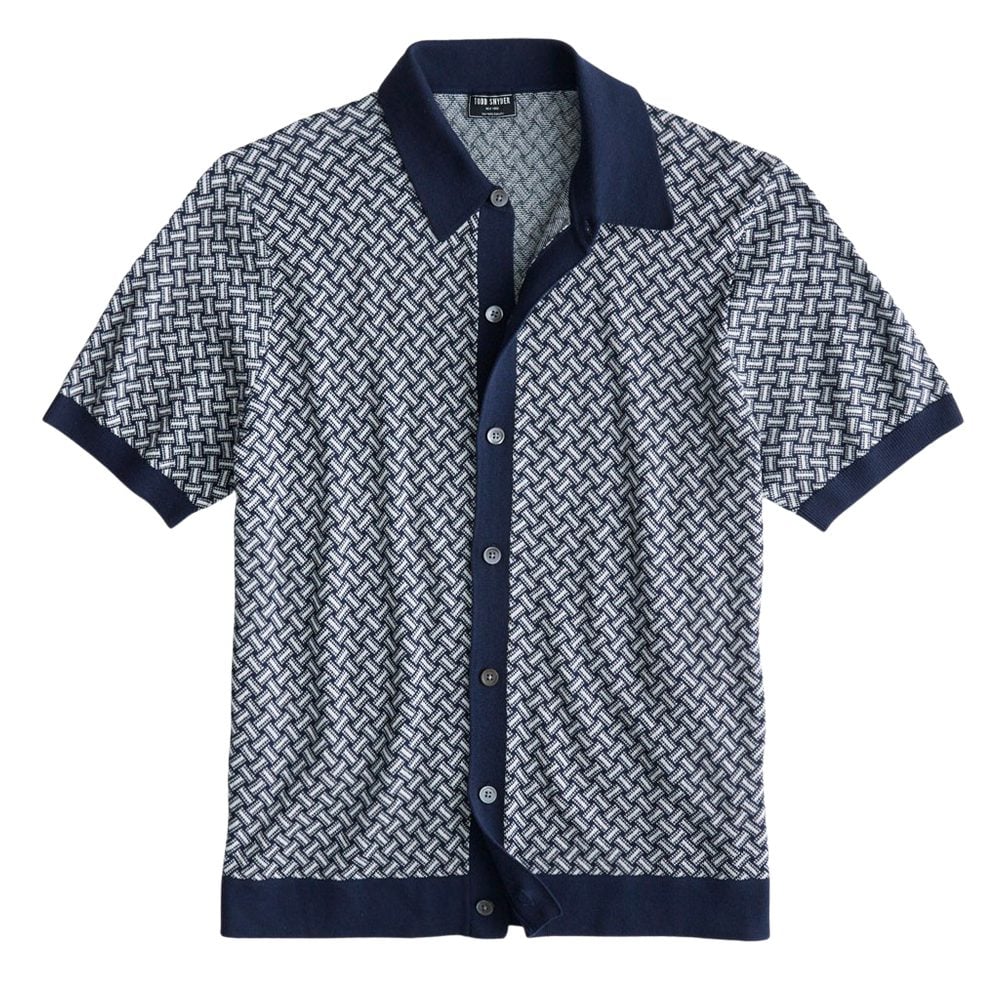 - Todd Snyder Over-Under Geo Full-Placket Polo
