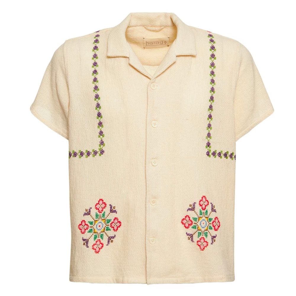 - HARAGO Beige Embroidered Shirt