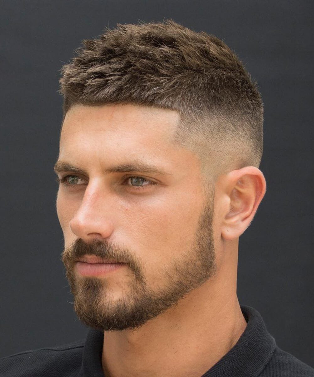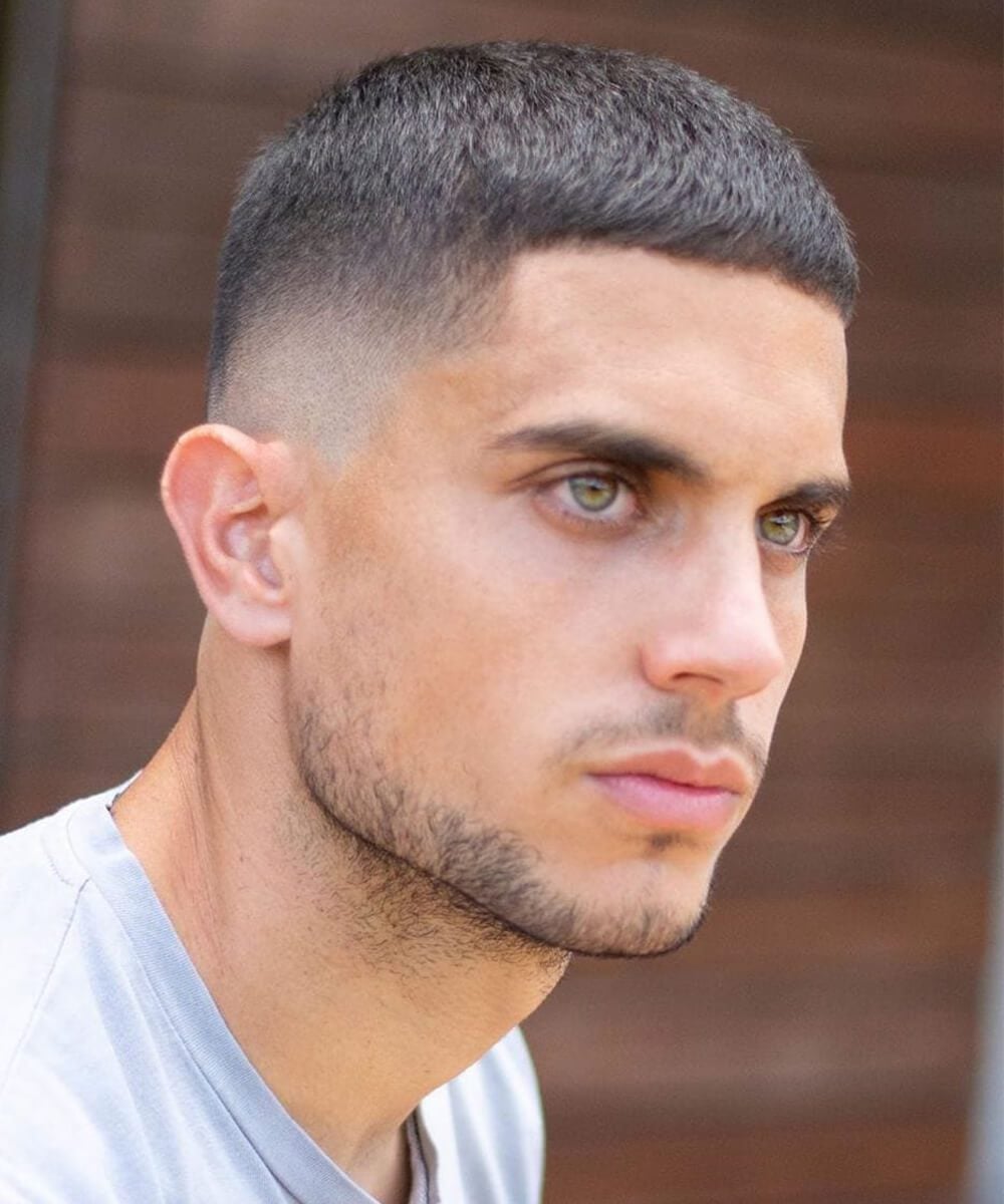 Once upon a time, when a barber took the clippers to your head, they would give you the same grade all over. The fade has changed that. But old and new combine in in this style, sharpening up the classic buzz cut with some contrast between the top and sides.