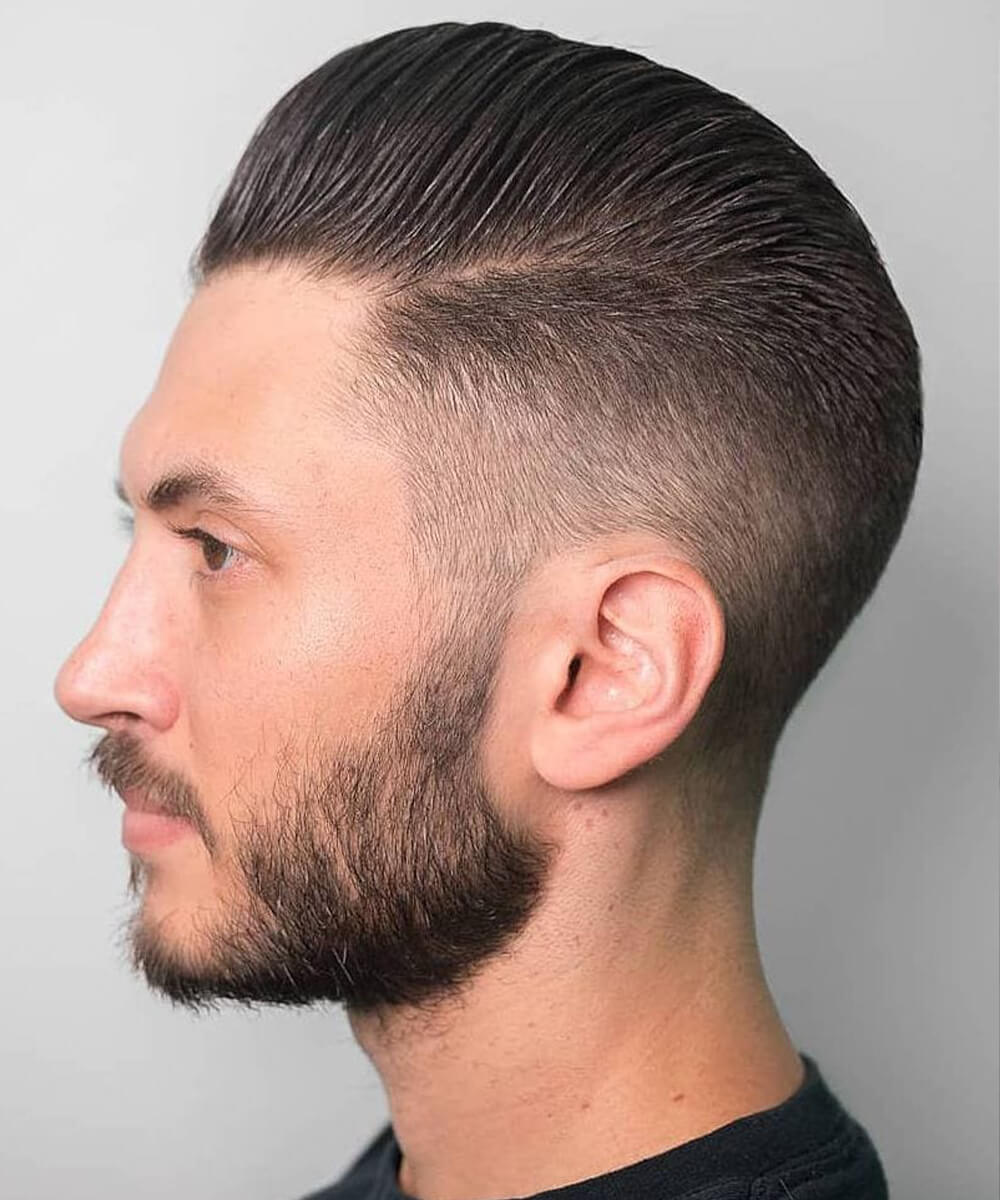This is a low-maintenance style with little to no styling required, but you will need to have the fade touched up regularly to stop it from growing out.