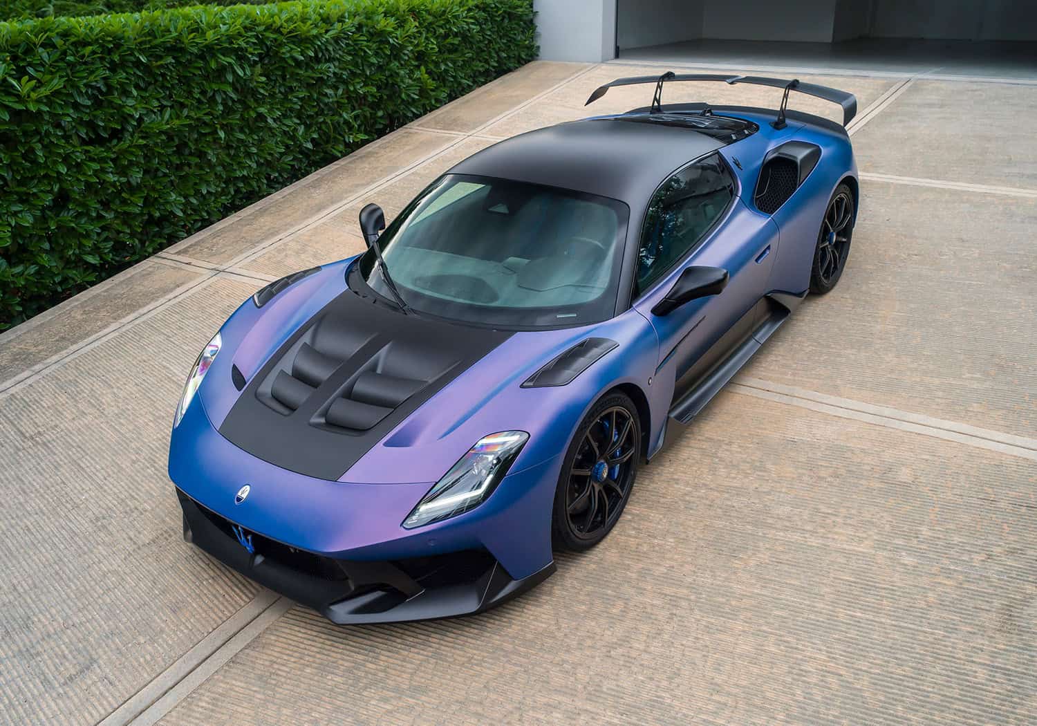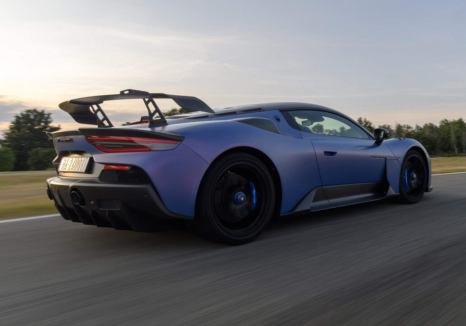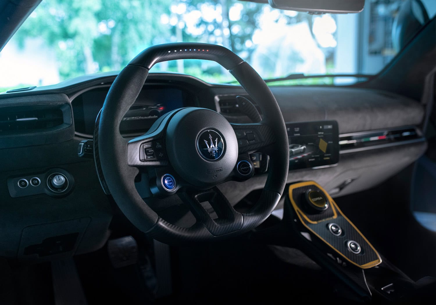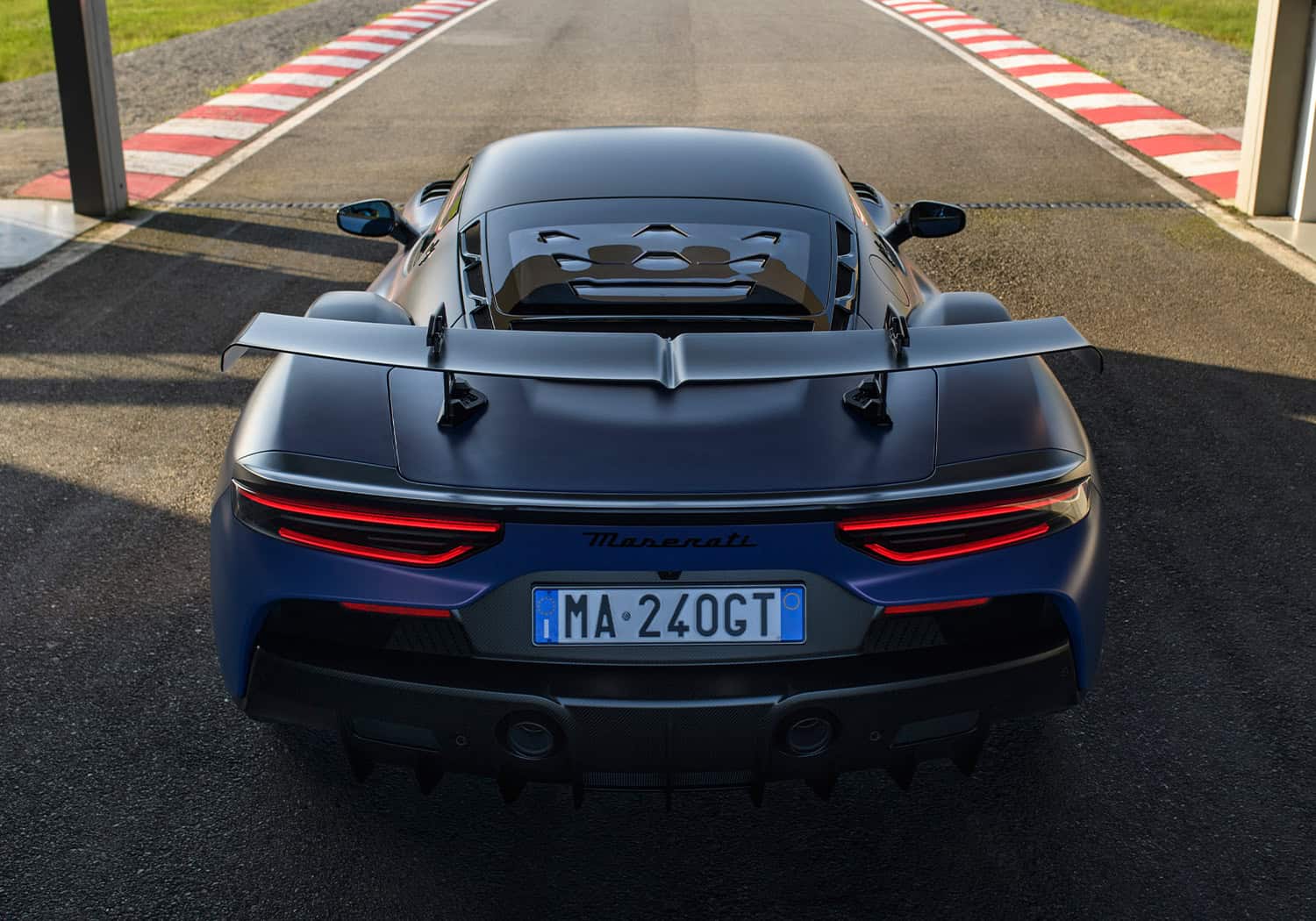It uses the same 3.0-litre Nettuno V6 but in a more focused package, thanks to extra carbon fibre, lightweight forged wheels, a stripped-out cabin and serious aero, including a huge rear wing.