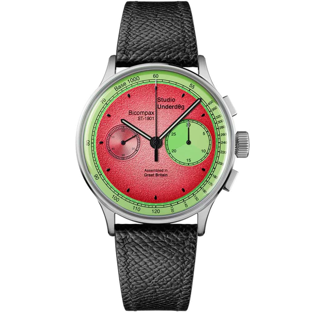 Bit of a cheat for the final watch of the year, as we’ve chosen a brand. No independent has defined 2024 quite like Studio Underd0g. There were queues around the block at this year’s inaugural British Watchmakers’ Day in March because these guys were selling watches with pizza dials, which can only be bought in person (hand delivered, get it?).