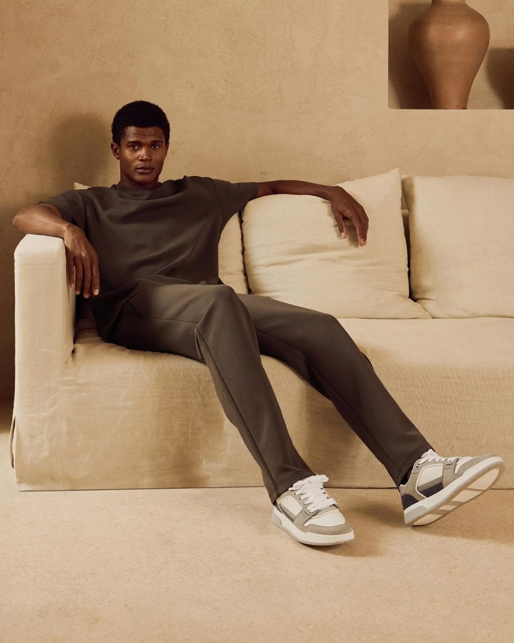 At the opposite end of the spectrum, joggers, hoodies and sweats can look the business in brown too.