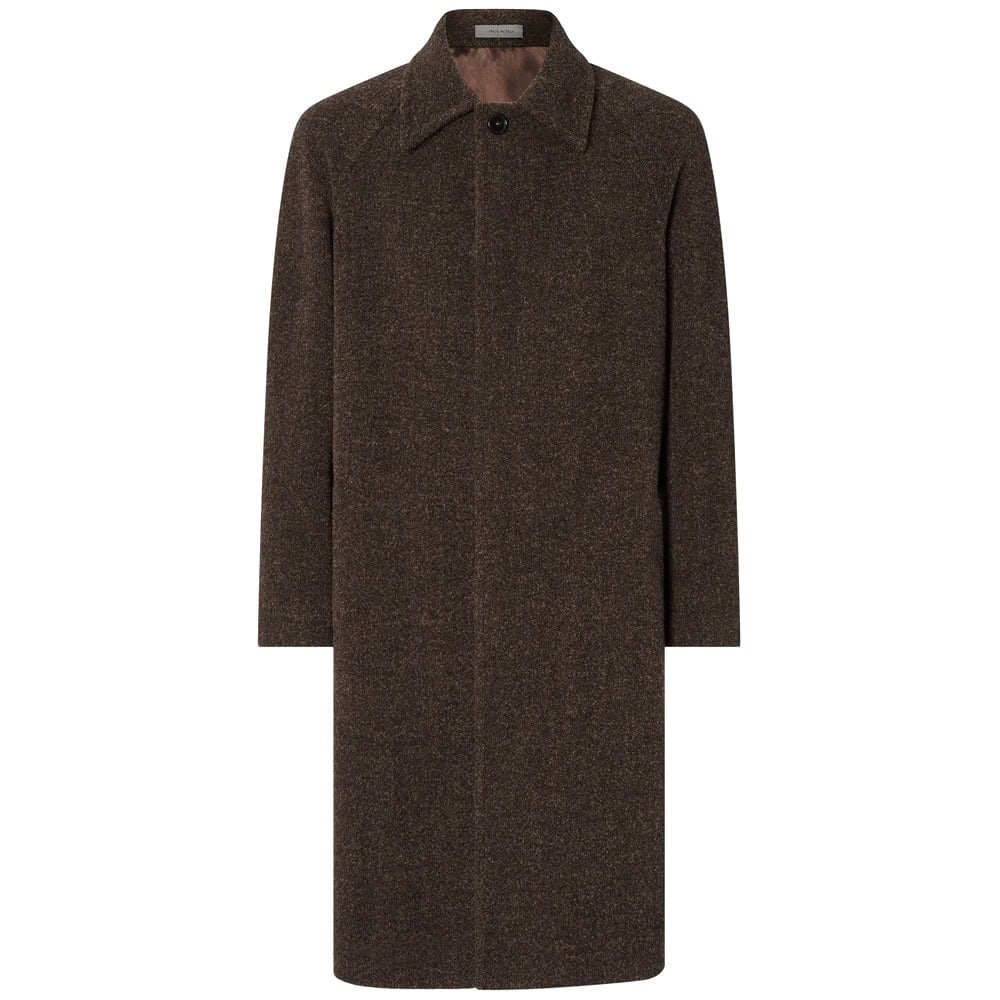 - Drake’s Brown Herringbone Wool Raglan Coat