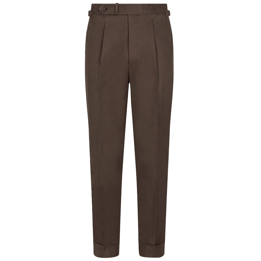 - Besnard Tobacco Single Pleat Cotton Drill Trousers