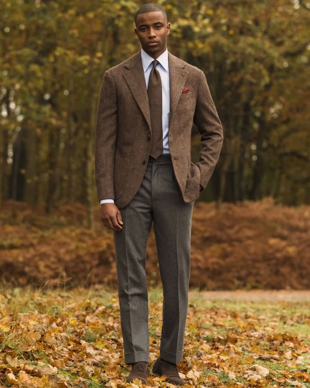 Where navy and grey can sometimes feel a bit corporate, brown suits and tailored separates sit in a much more relaxed middle ground. Think soft-shouldered jackets, pleated trousers, and fabrics with a bit of texture.
