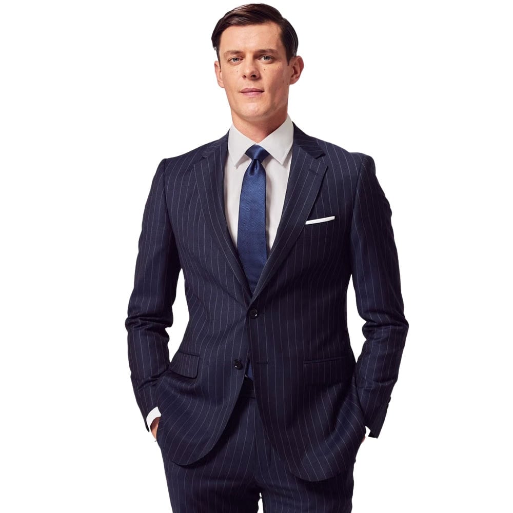 - Hawes & Curtis Slim Fit Navy Chalk Stripe Suit