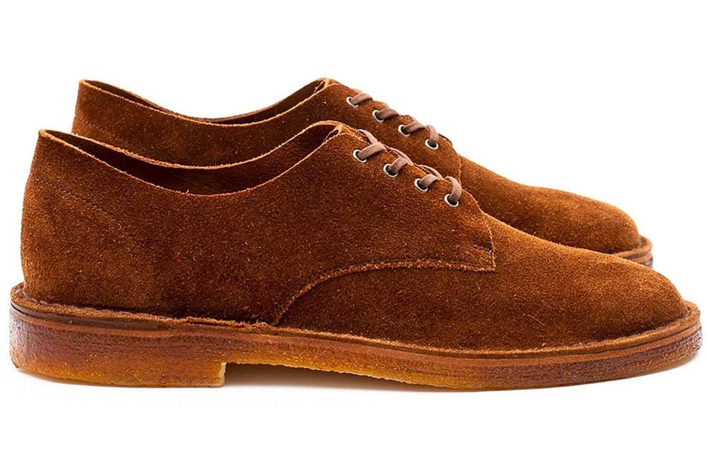 Derby shoes are the more casual cousin of the Oxford, the difference found in the laces. Oxfords have a ‘closed’ lacing system meaning the eyelets are sewn under the front part of the shoe, giving a sleek look better suited to wearing with formal tailoring. Derbys on the other hand have an ‘open’ lacing construction, where the eyelets are sewn on top of the vamp allowing the shoes to be more comfortable and easy to wear.