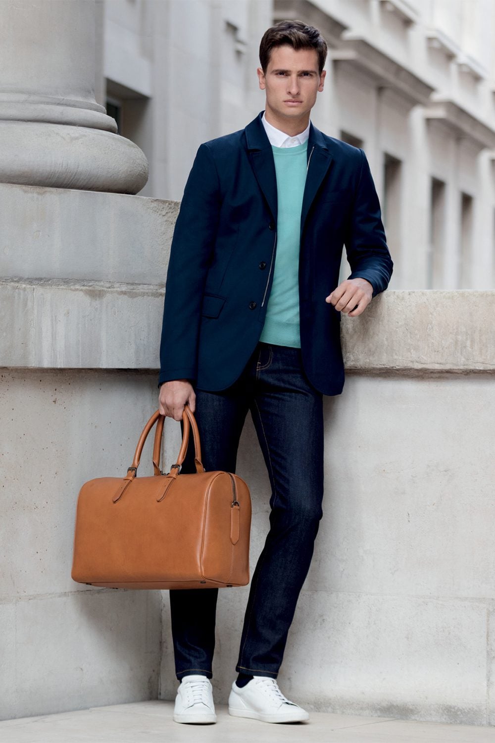 If in doubt, don’t go overboard. Stick to tried-and-tested wardrobe essentials including dark denim jeans, chinos, Oxford shirts, unstructured navy blazers and simple knitwear. Smart casual is often at its best when it’s understated.