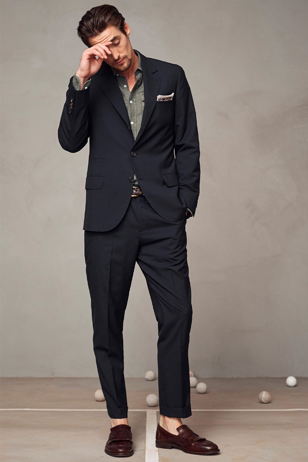 One way to dress for a more formal smart casual event is to wear a suit without a tie. It sounds simple, doesn’t it? But there are, as always, a few rules to consider. Keep the suit as laid back as possible, by looking for one in an unstructured, single-breasted cut, and pair it with an Oxford, denim or grandad collar shirt.