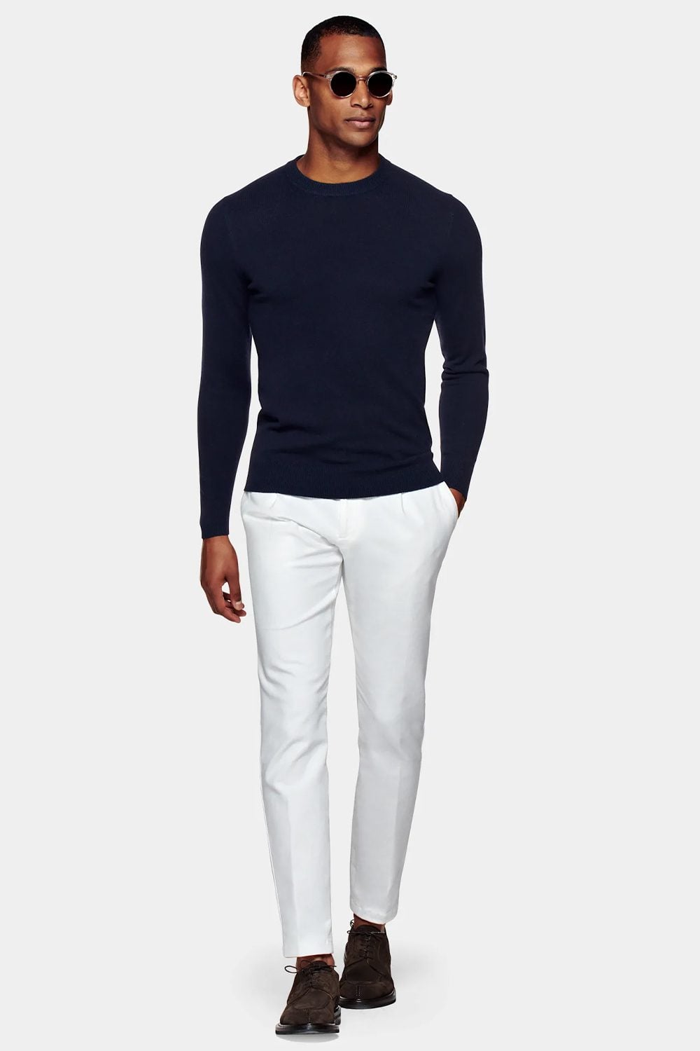Wear it over loafers, boat shoes, chukka boots or Derbies. These subtle swaps ensure you don’t look like every other desk jockey who’s spilled out of the office at 6pm.