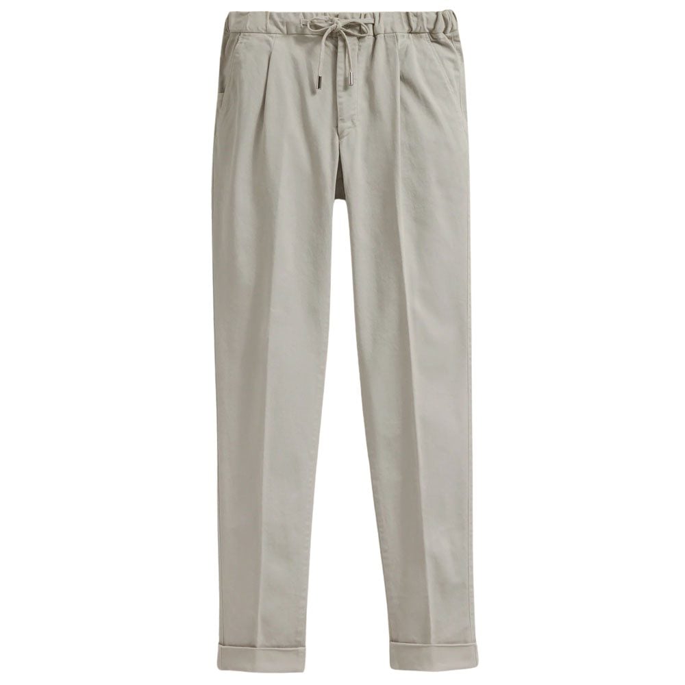 The drawstring offers unrivalled comfort over a traditional, fixed waistband, expanding and contracting with your body in the same way that sweatpants do. Although, of course, they’re made from smarter fabrics including cotton and wool, making them look, from the outside at least, like a regular pair of tailored trousers.