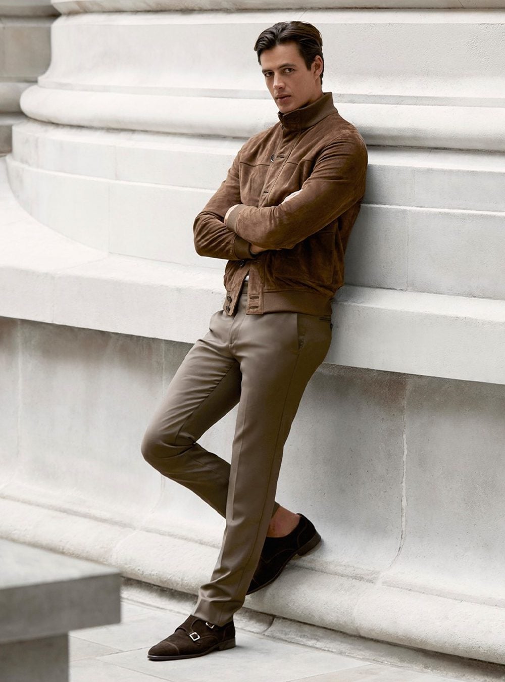It is possible to dress smart casual without actually switching up your style. Simply look out for casual pieces you’re already comfortable with, but cut in more luxurious fabrics. Bomber jackets in suede or leather; T-shirts in merino wool; knitwear in cashmere. These are all pieces usually worn in casual settings, but when made from these fabrics they take on a smarter look that’s perfect for combining with chinos and Derbies.