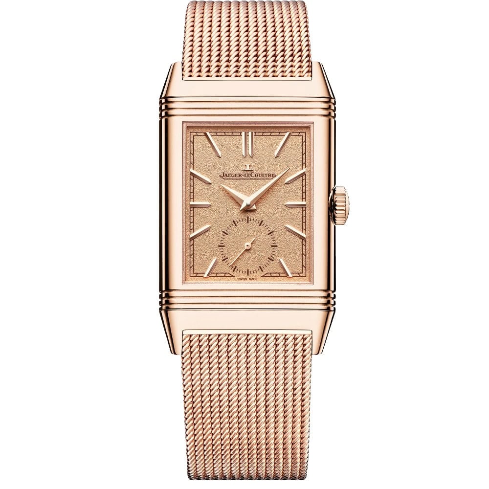 Just when you think Jaeger-LeCoultre can’t do anything more with its Reverso, it pulls this beauty out of the watch roll. This is the first time that a Reverso has been put on a full-gold Milanese bracelet, and there is something about the slinky elegance of this addition that turns the familiar lines of this design into something more sexy and less sporty.