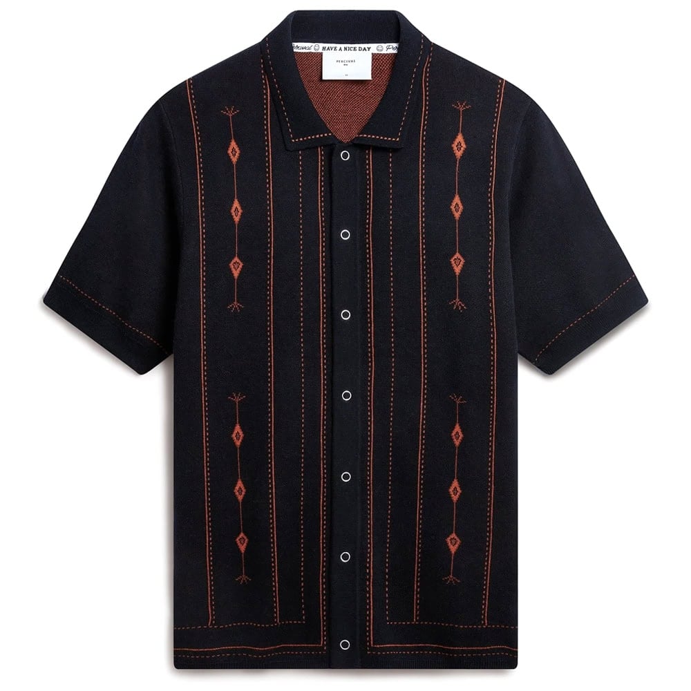 Subverting the classics and putting its own London twist on traditional menswear – it’s all in a day’s work for Percival. The brand focuses on staple pieces like overshirts, knit polos, tees and soft tailoring, often embellished with subtle tongue-in-cheek touches such as embroidered motifs and off-kilter fabrics.
