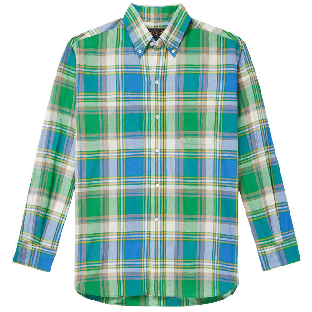 - Beams Plus Button-Down Collar Checked Cotton-Madras Shirt