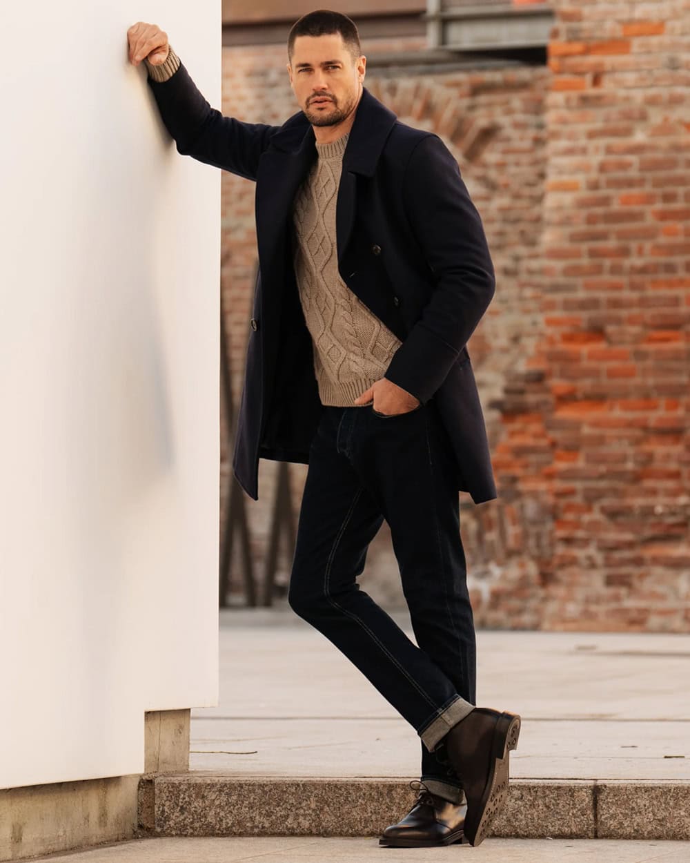There are plenty of styles out there, but a traditional three-pocket worker jacket is always a safe bet. Go for one that’s fitted, but with enough room to get a jumper underneath without impeding your shoulder mobility – you should feel comfortable and unrestricted when raising your arms.