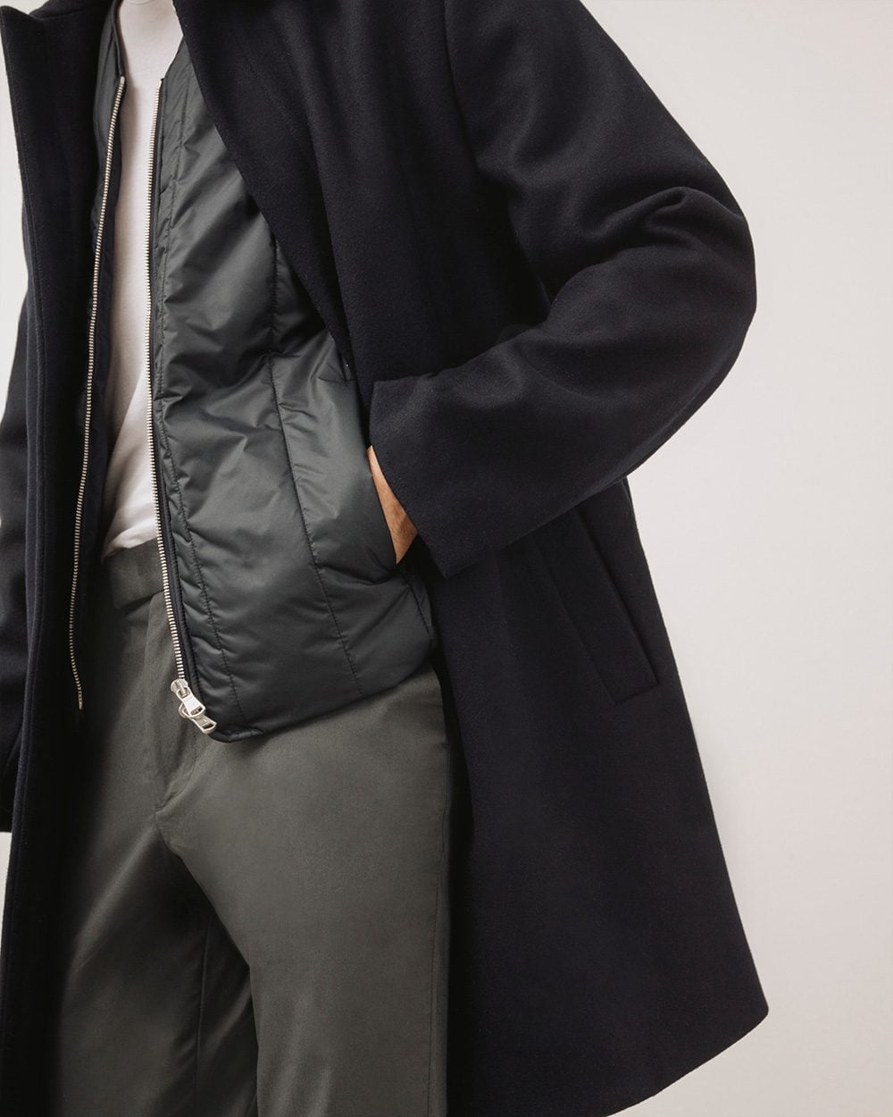 That’s probably not an arrangement that will work for you. But here’s a coat that works well over casualwear. Unexpectedly perhaps, it also looks good over suiting, particularly in a dark shade, and on a man ready to carry it off.