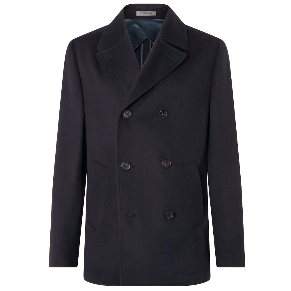 - Corneliani Blue Super Fine Wool Beaver Peacoat