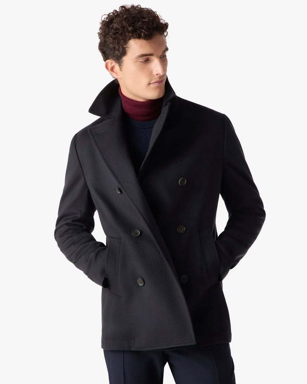 Characterised by twin rows of buttons at the front and a wide lapel and collar to be popped when the wind blows cold, this is a formal-looking coat. It’s at home over a suit. That’s not to say you can’t subvert it with casual dress but it’s not as versatile as others on this list.