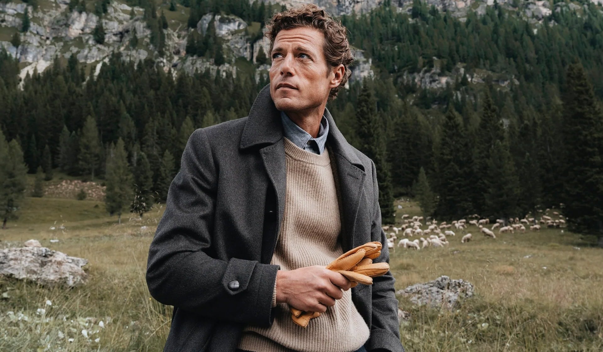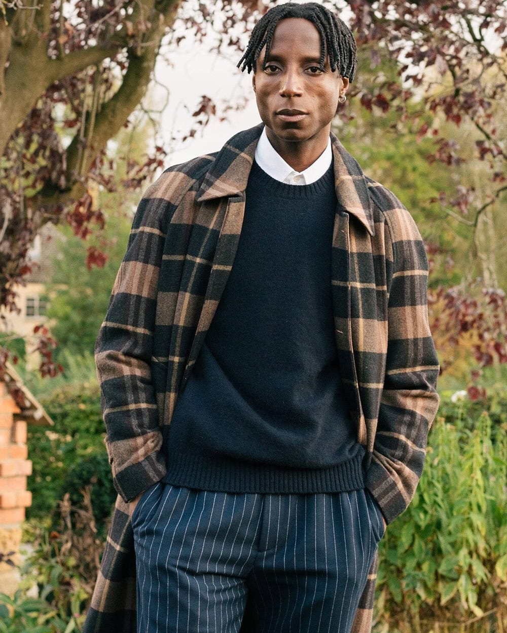 When it comes to the overcoat, think heavy and woollen in a textured, patterned fabric, like a Prince of Wales check or similar. Something roomy enough to throw on quickly without having to wrestle.