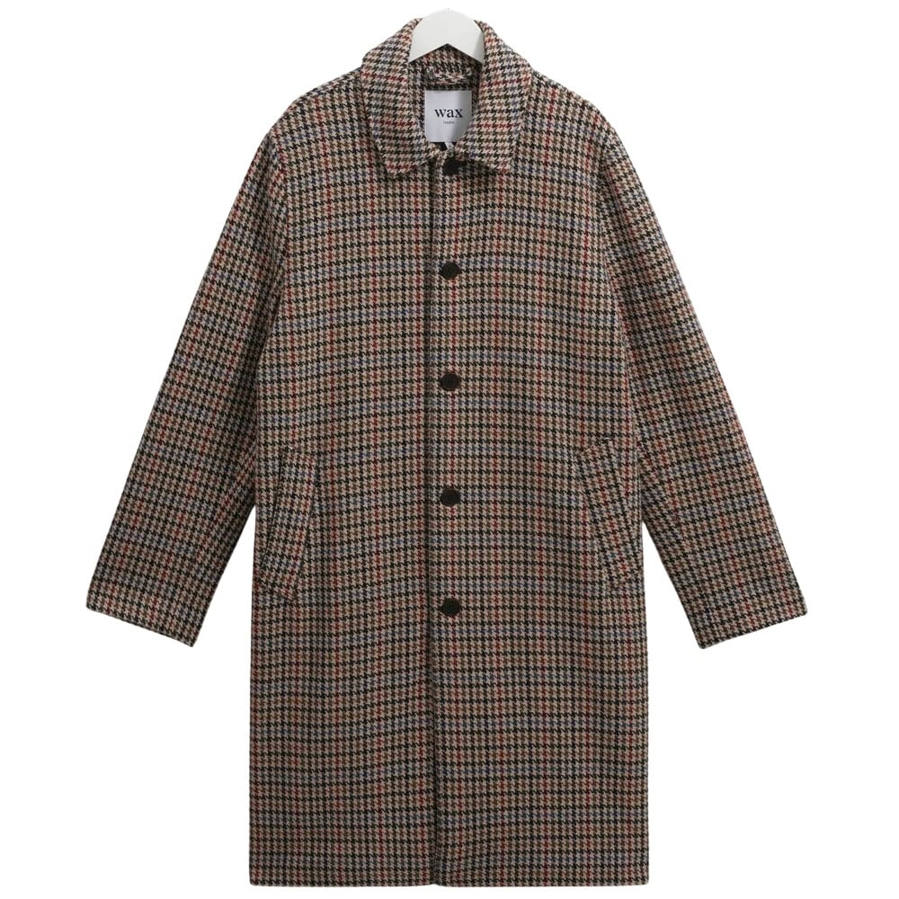 - Wax London Stan – Natural Houndstooth Check Wool Car Coat